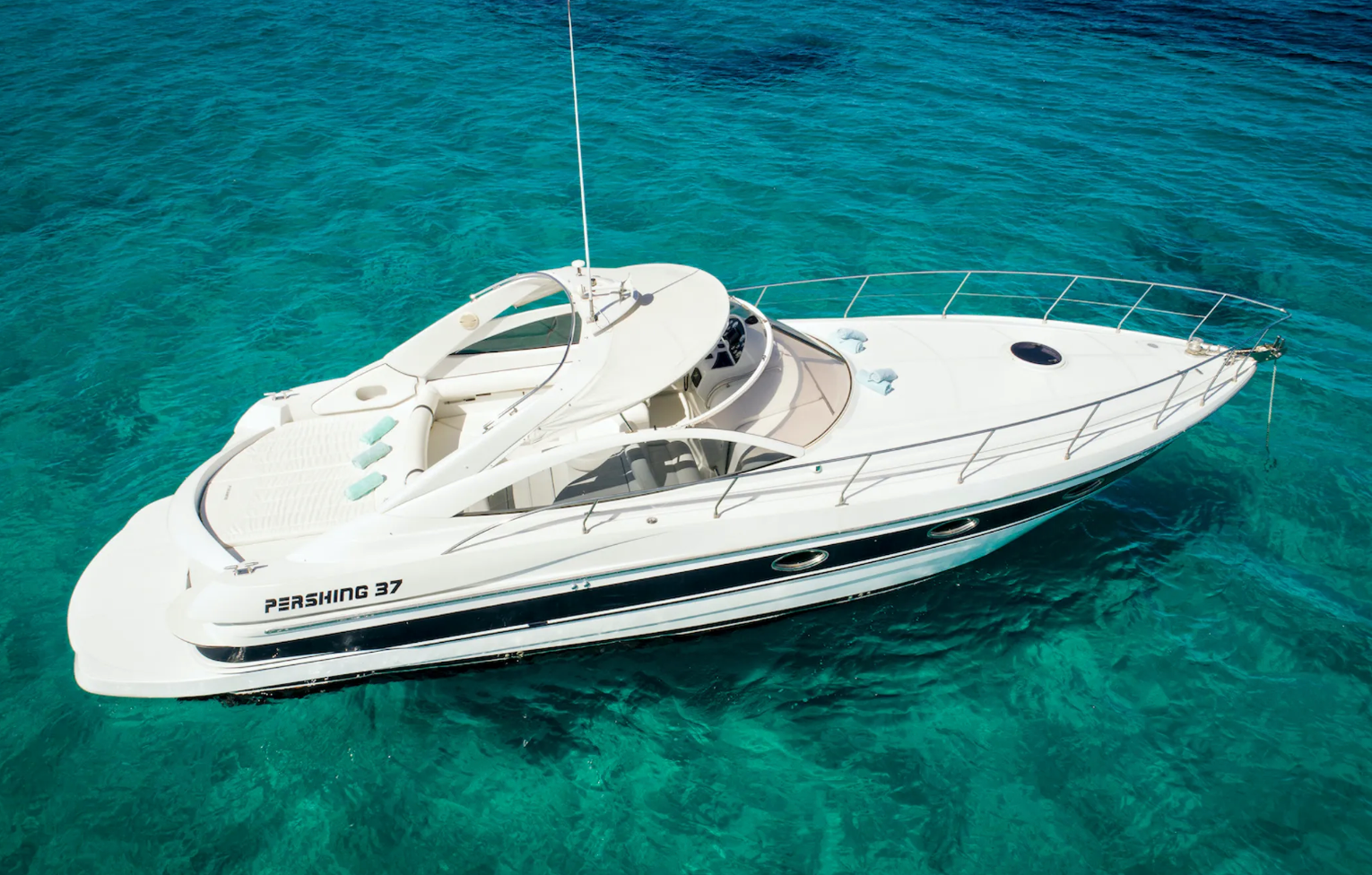 Set sail from the exclusive Marina Botafoch in Ibiza aboard the Pershing 37 stunning Italian-designed yacht with space for up to 12 guests and a mandatory professional skipper, it’s ideal for cruising to Cala Bassa, Formentera or enjoying a relaxed day at sea. This premium motor yacht features a full bathroom, a fully equipped kitchen, fridge, indoor and outdoor sound system, spacious sunbathing areas and comfortable seating throughout. Whether you're planning a romantic escape or a group celebration, the Pershing 37 delivers elegance on every wave. Your rental includes complimentary drinks, snorkel gear, paddle board, towels, ice, insurance and final cleaning. A professional skipper is mandatory and must be hired separately.